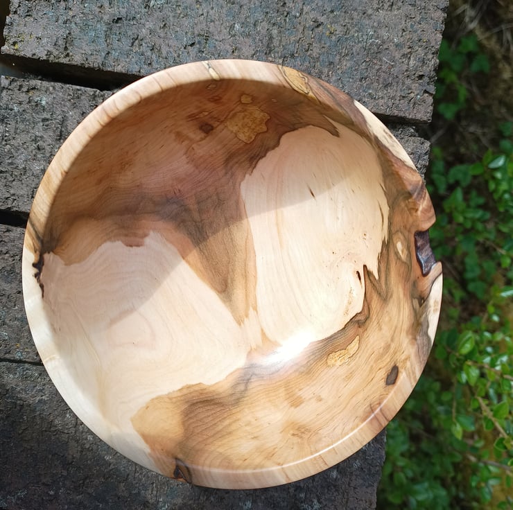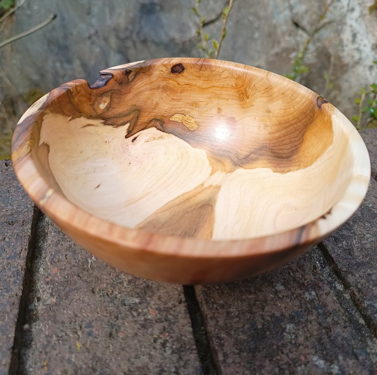 This bowl comes from a rowan tree that fell during the winter storms a few miles down the coast in Roshven. As I often find with rowan the tree had started to rot from the inside leaving only a small section that was useable but part of the rotting process includes the fungi that create the amazing spalting pattern. Beauty coming from decay!
