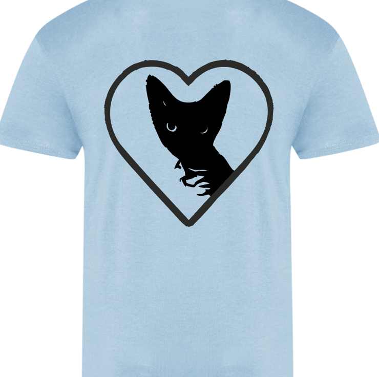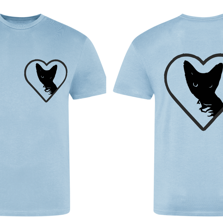 Celebrate your love for cats with this charming Heart & Cat Silhouette T-shirt. With its eye-catching design of a black cat inside a bold heart outline, this t-shirt combines style and simplicity effortlessly.