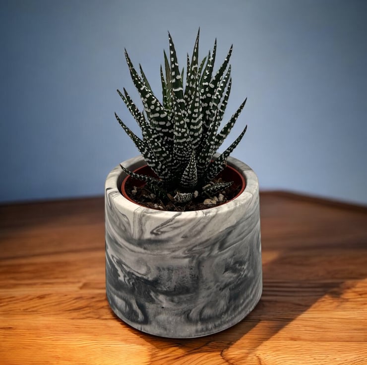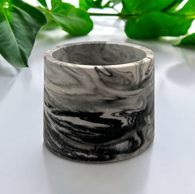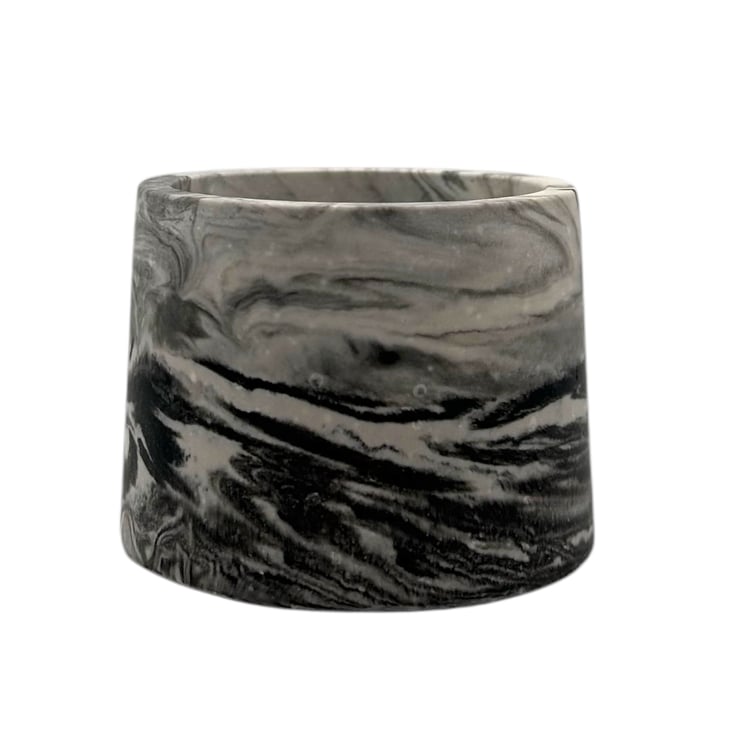 This small plant pot features a stunning marble effect inspired by the natural beauty of marble. Carefully handmade from Cassini, a material often used for restoring and repairing marble and stone, this pot has a smooth and tactile finish similar to marble. It is also water-resistant, making it suitable for indoor and outdoor use.