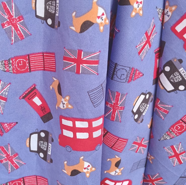 Handmade in Wales 1950s Vintage retro rockabilly full circle skirt, elasticated waist This skirt is made in a cotton poplin London Print on a lavender background. It will fit multi sizes dues to the elasticated waist. 28" Long from top of waistband. This design has a built in tie belt