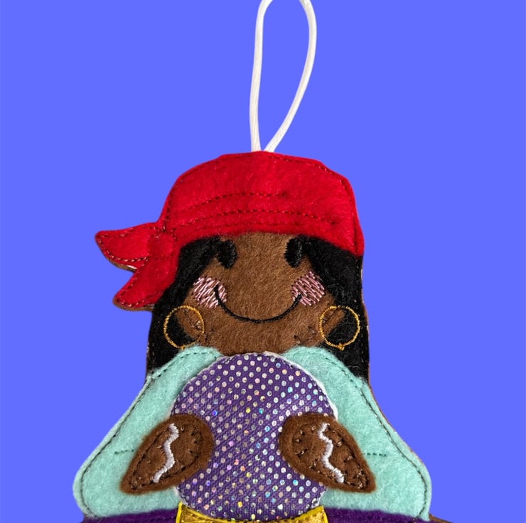 Handmade embroidered gingerbread lady.