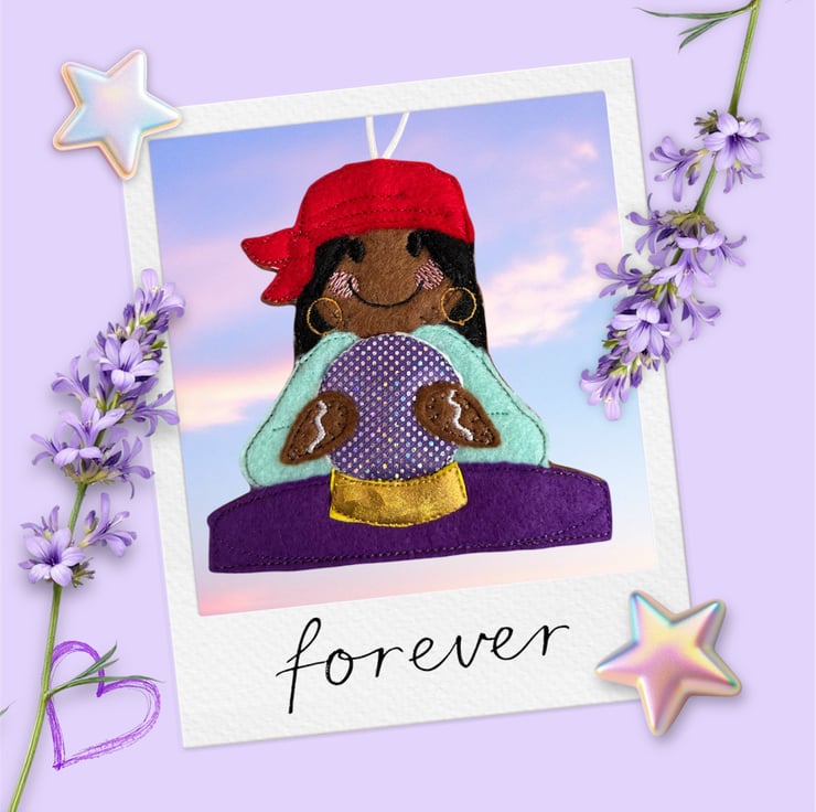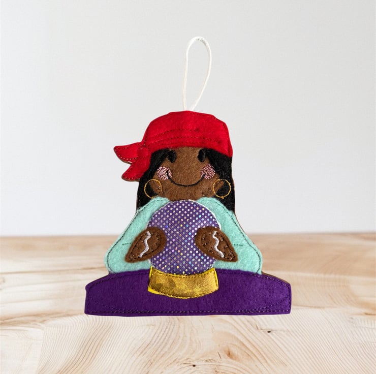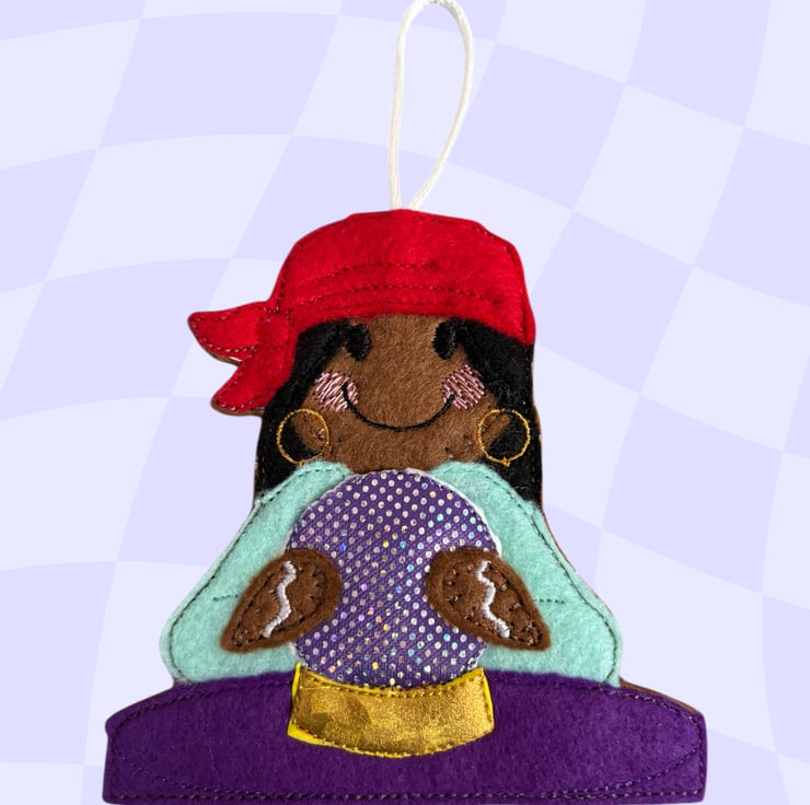 Gingerbread lady with a crystal ball Embroidered Hanging Keepsake
