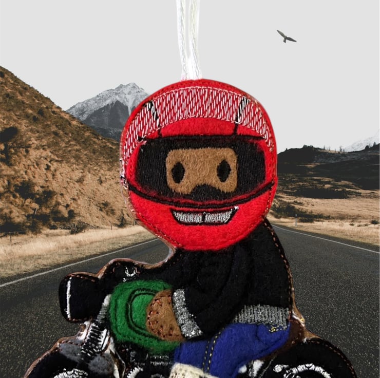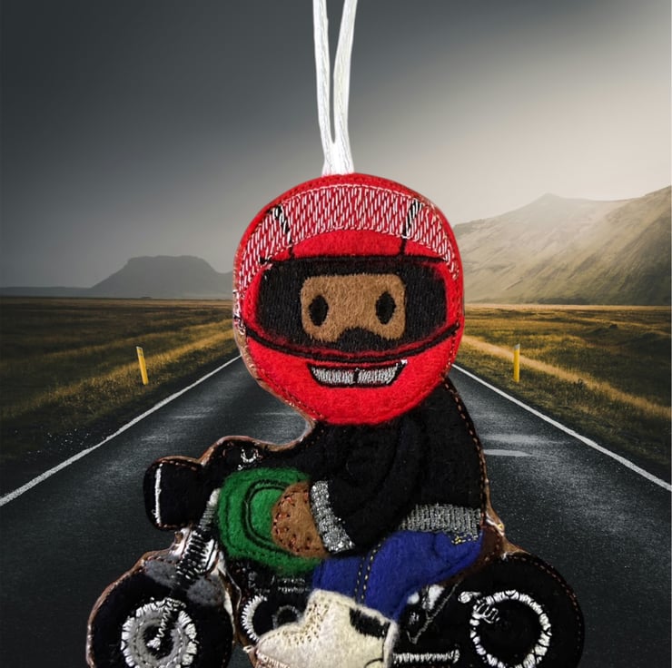 Handmade embroidered gingerbread man.