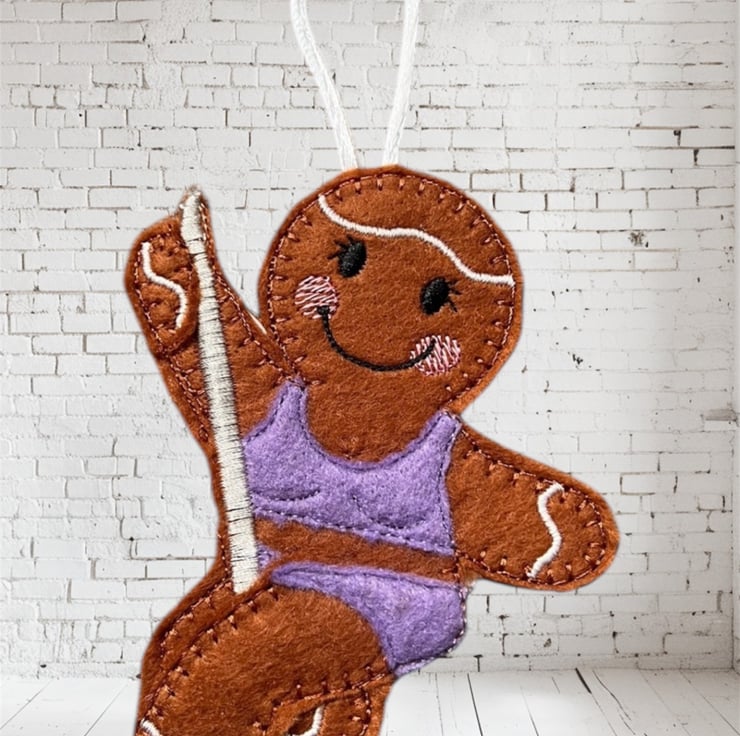 Pole dancing Gingerbread lady Embroidered Hanging Keepsake