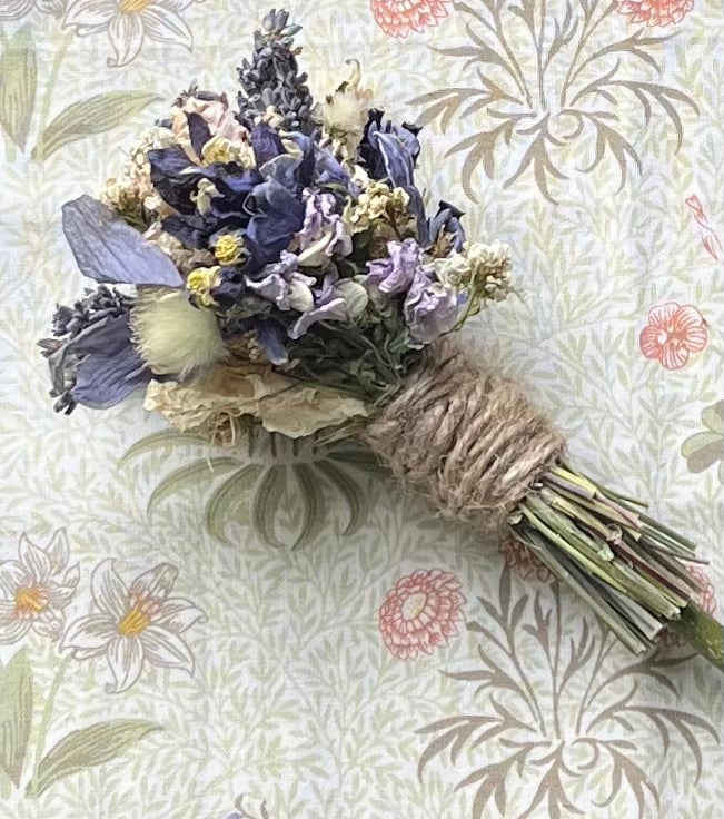 Dried flowers can last for many months if they are well looked after – handled carefully, kept out of direct sunlight and away from water and humidity. Some of the flowers may naturally fade over time.
