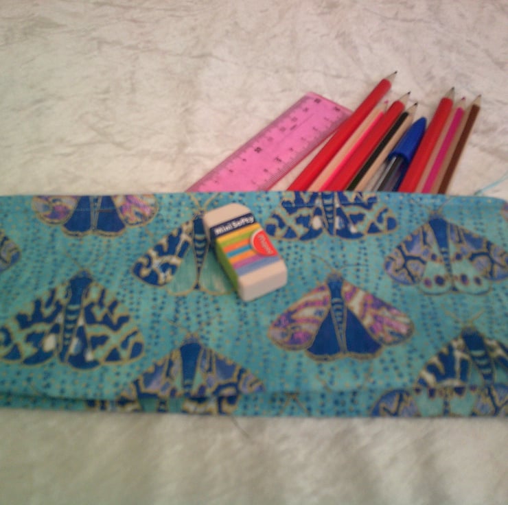 We call this a pencil case, but it has many uses including storage for pens and pencils, crochet hooks, stitch holders, pins, sewing needles and scissors. It can also be used as a gift bag that is then reusable for any of the previously listed ideas.