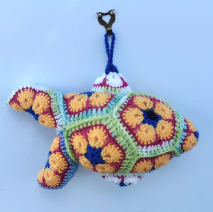 This highly colourful Crochet Fish decoration, handmade by Carole, is not just a beautiful addition to your home, but also a durable one. It will brighten the wall anywhere in the home and give many years of pleasure, crocheted with Acrylic Yarn. It is machine washable at 40 degrees. C.