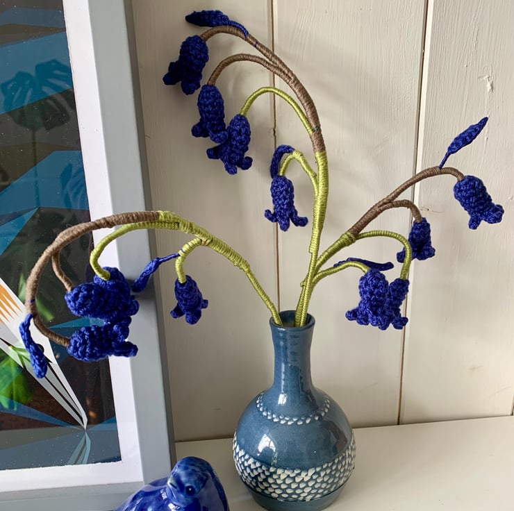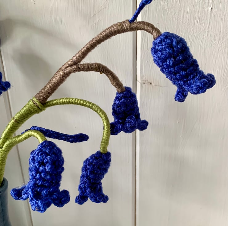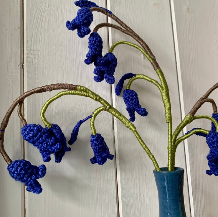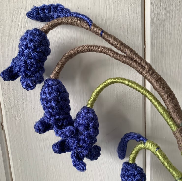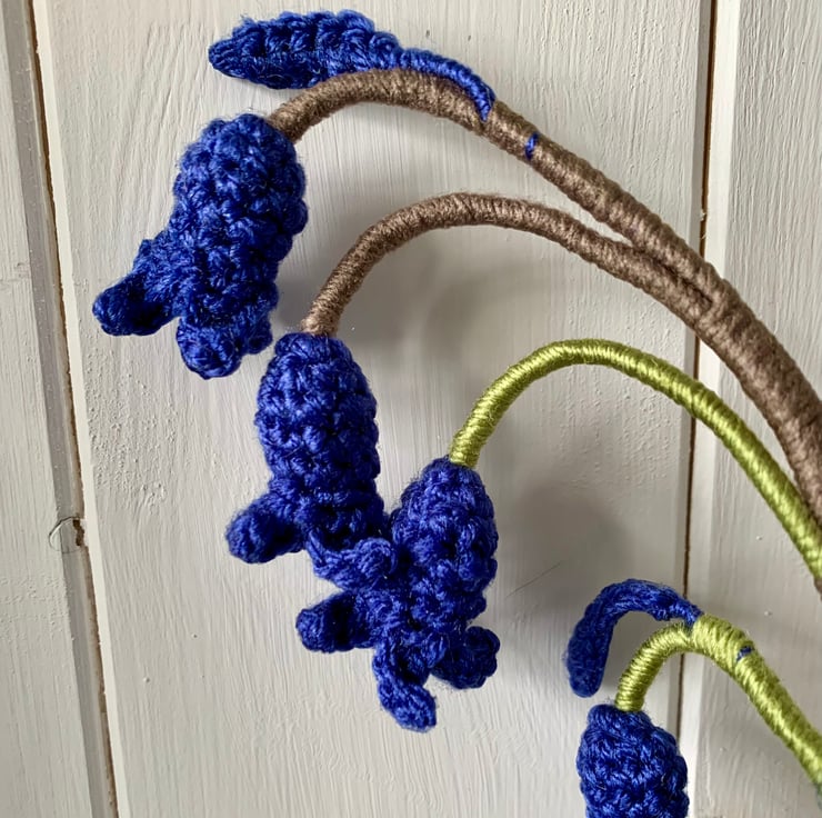 Crochet Bluebells, 3 stems of British bluebells.