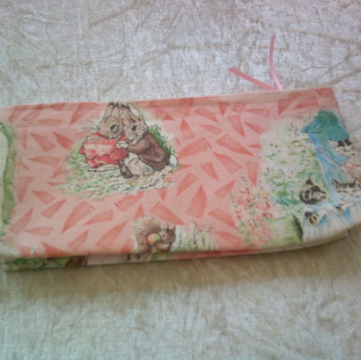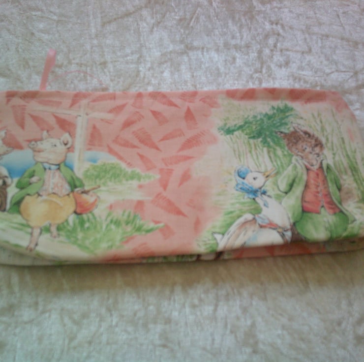 The fabric used is of Beatrix Potter Characters including Jemima Puddle-duck with Mr Fox, Tom Kitten, Pigling Bland and Squirrel Nutkin