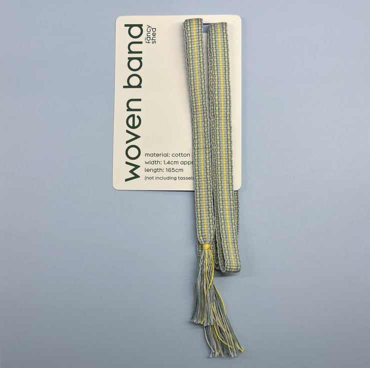 Woven bands have a variety of uses; as ribbons, hair or clothing accessories, belts, straps for bags or as part of your craft projects, including edging or trim for embroidery.