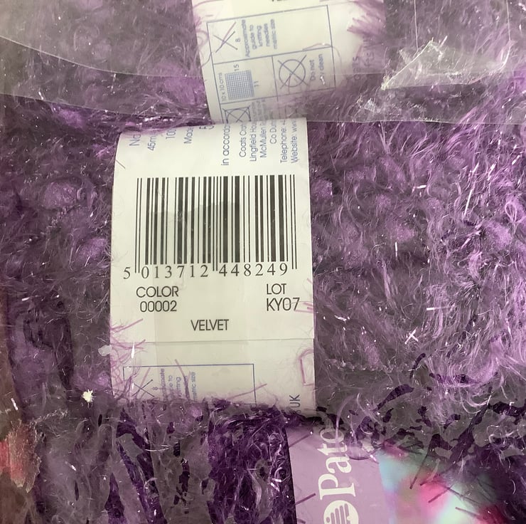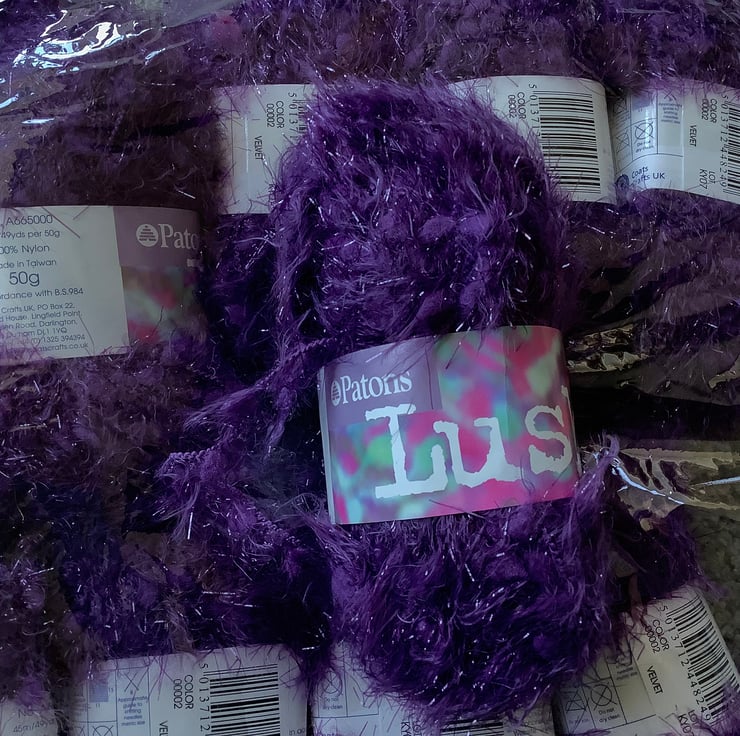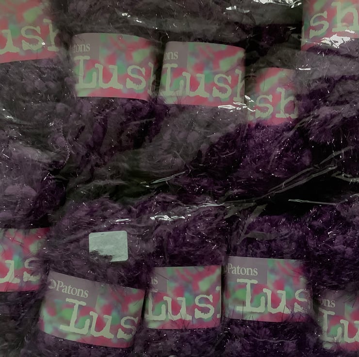 This listing is for the complete pack of all 10x50g balls of Patons Lush in a gorgeous purple called ’Velvet’