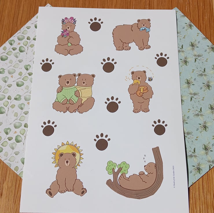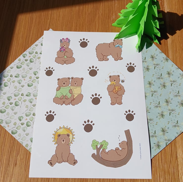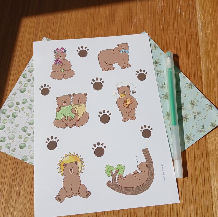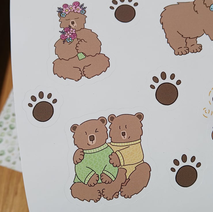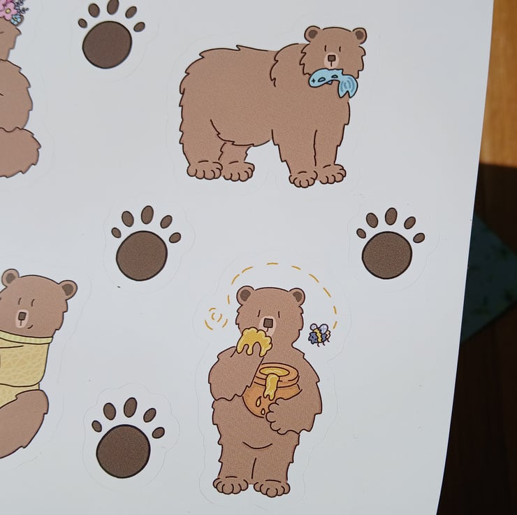 The world is finally waking up for summer, and the bears are up, too! Each sticker has been hand drawn by me, with six unique designs and eight mini stickers that are perfect for decorating journals, sketch books or planners, or for crafting.