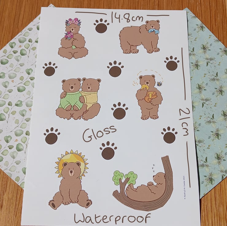 This A5 sticker sheet has been professionally printed on to waterproof vinyl, with a gloss finish.