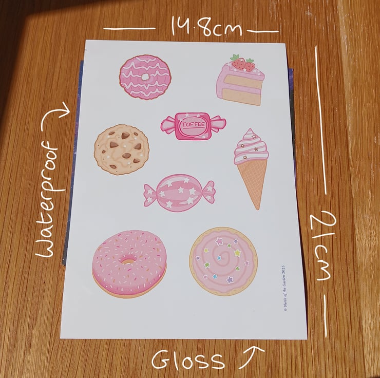 This A5 sticker sheet has been professionally printed on to waterproof vinyl, with a gloss finish.