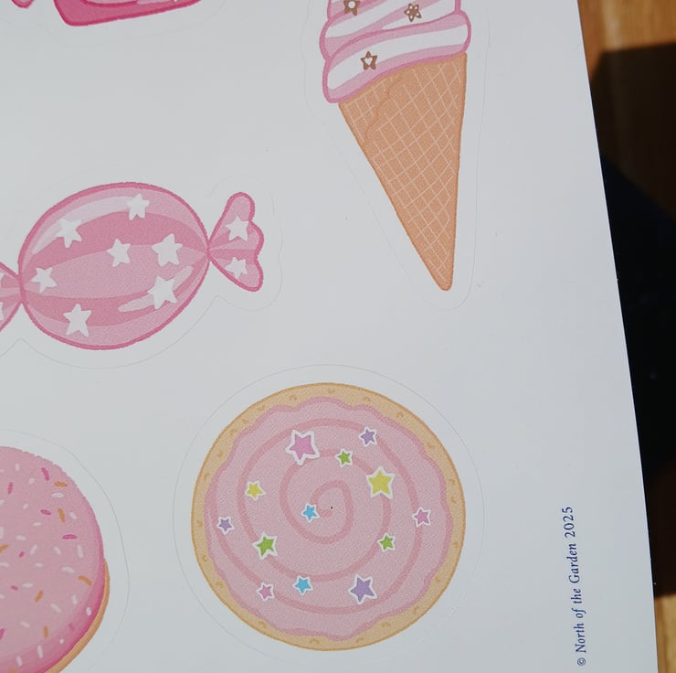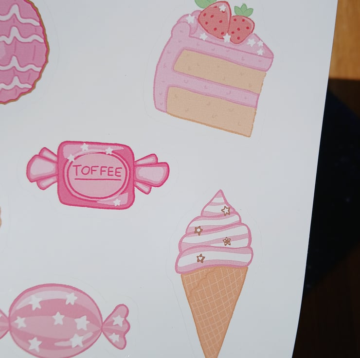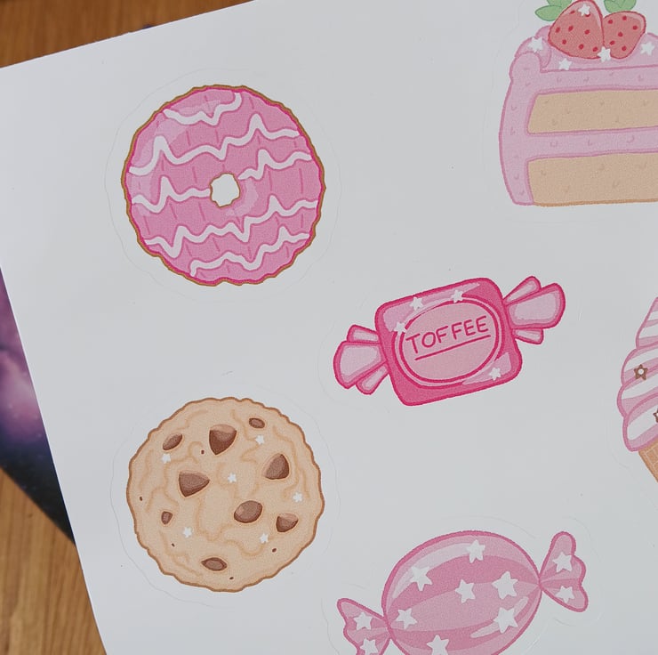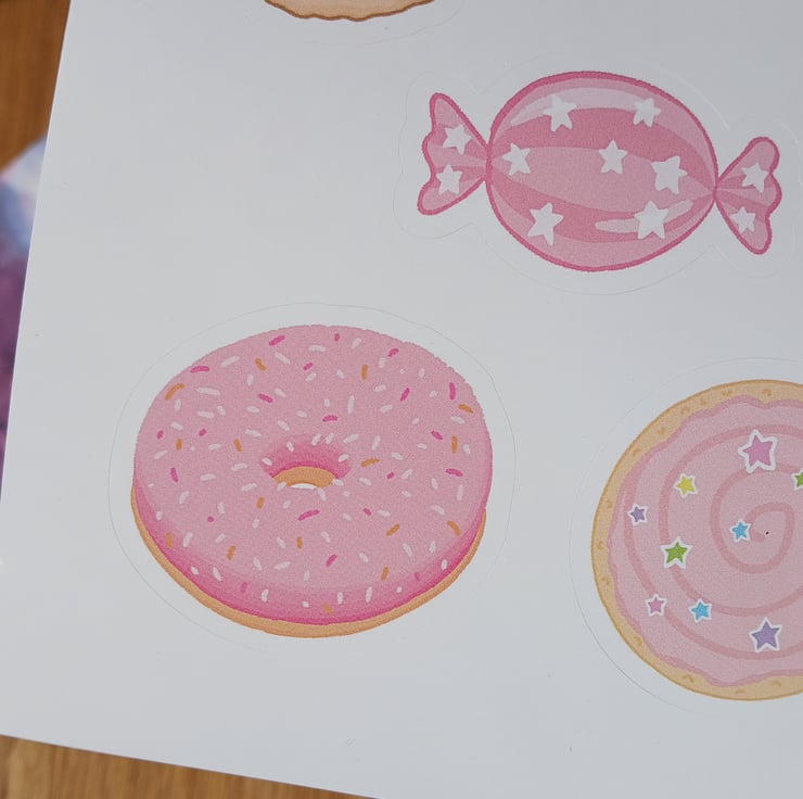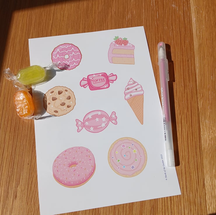 Pretty and pink, this sticker sheet is for anyone with a sweet tooth! All eight designs have been hand drawn by me, and are perfect for decorating journals, sketch books or planners, or for crafting.