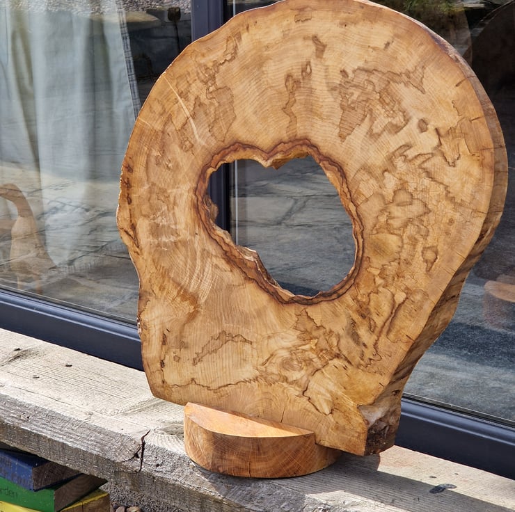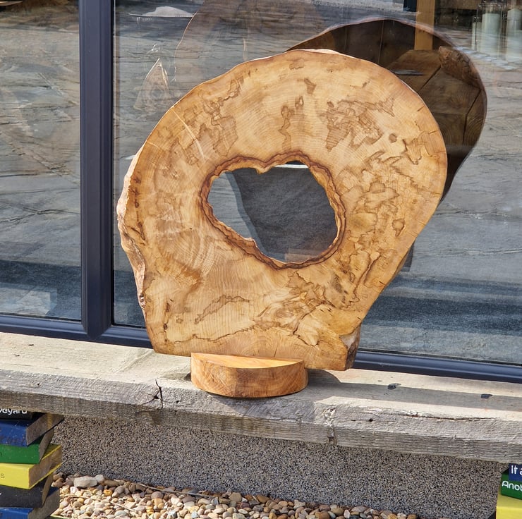 Add a unique touch of nature to your home with this one-of-a-kind handcrafted elm tree slice, beautifully mounted on a solid wood base. The natural hollow formation, rich grain patterns, and organic beauty of elm wood make this a truly special piece.