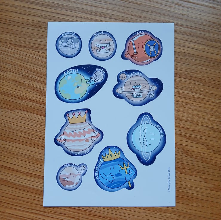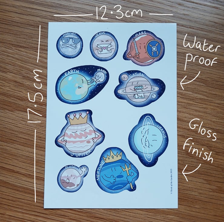 This 12.3 by 17.5 cm sticker sheet has been professionally printed on to waterproof vinyl with a gloss finish.