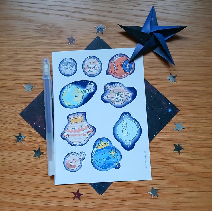 The beautiful planets and their giant personalities are all here on this sheet, and this time, Pluto's included! All nine stickers have been hand drawn by me, and are great for journals, planners, or sketchbooks, or for crafting.
