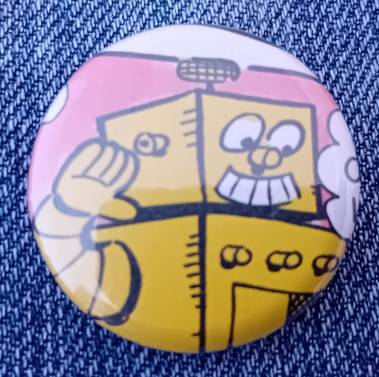 Add a splash of colour and a hit of nostalgia to your outfit with this bold badge, handcrafted from original vintage British comics! Each one is a mini work of pop-art history – no two are the same.
