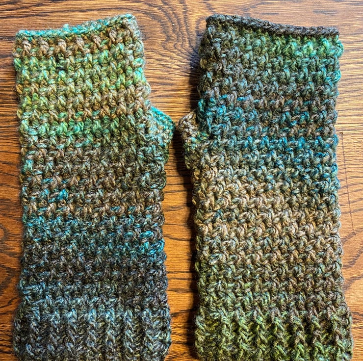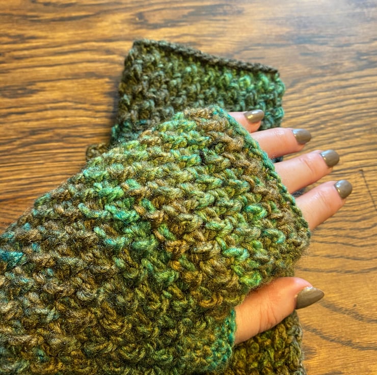 A beautiful, soft and cosy pair of wrist warmers / fingerless gloves. Perfect for staying warm in cold wintry weather but less restrictive than full gloves, and also ideal for transitional spring / autumn weather with cooler mornings and evenings.