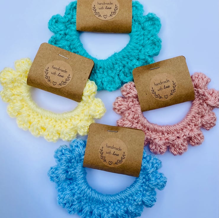 Pretty crochet hair scrunchie with frills. Available in most colours. Made to order.
