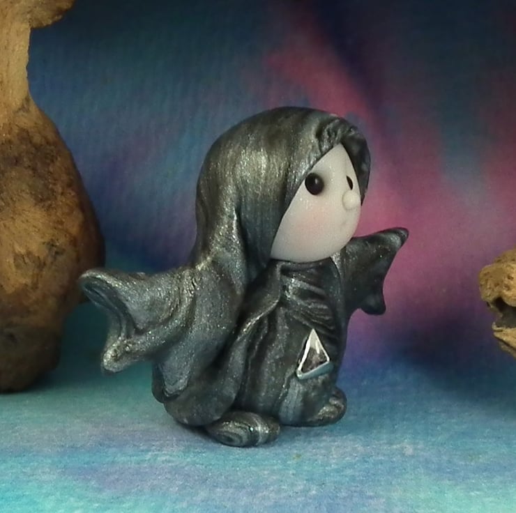 This is a 'one of a kind' creation; entirely handmade without the use of moulds here at my studio on the Sussex Coast. Modelled with Prosculpt polymers, painted with heat set paints before sealing with lacquer, Frell has sparkling black onyx eyes and is one and a half inches tall.