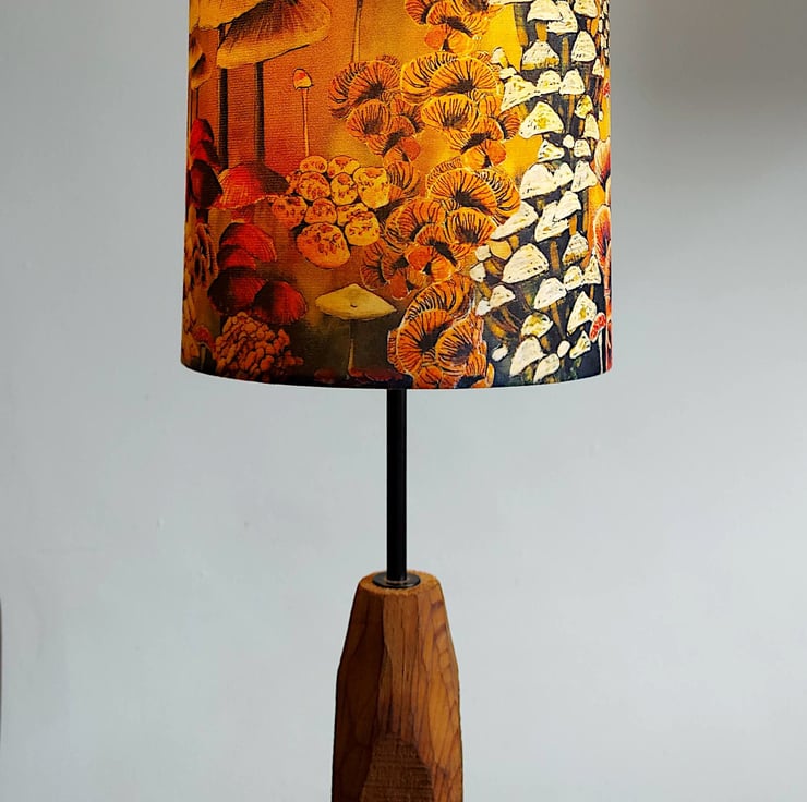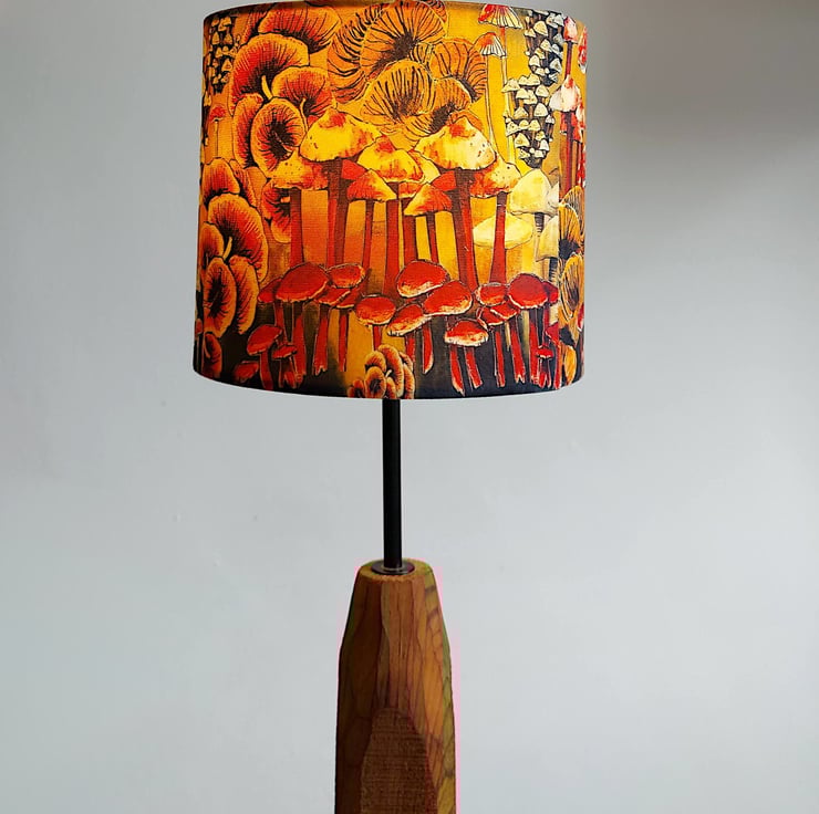 Bring a touch of nature into your home with this beautiful drum lampshade, featuring Lily Greenwood’s original ‘Mushrooms and Fungi’ design. Inspired by retro 70s textiles, this piece adds a playful, artistic feel to any room.