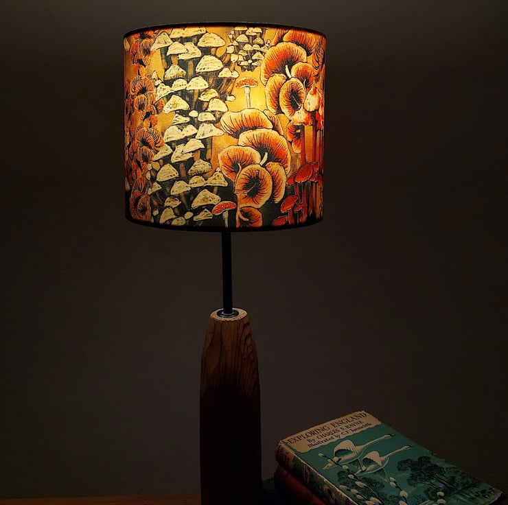 Handmade 'Mushrooms and Fungi' Drum Lampshade by Lily Greenwood