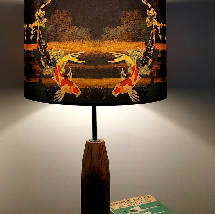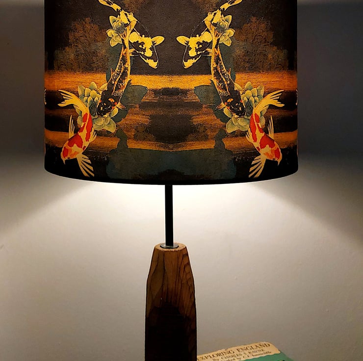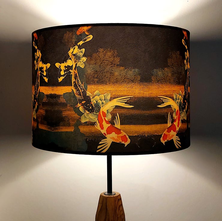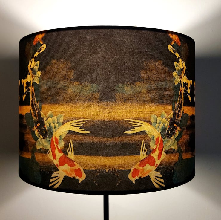 Handmade 'Koi on Black and Gold' Drum Lampshade by Lily Greenwood