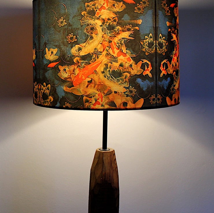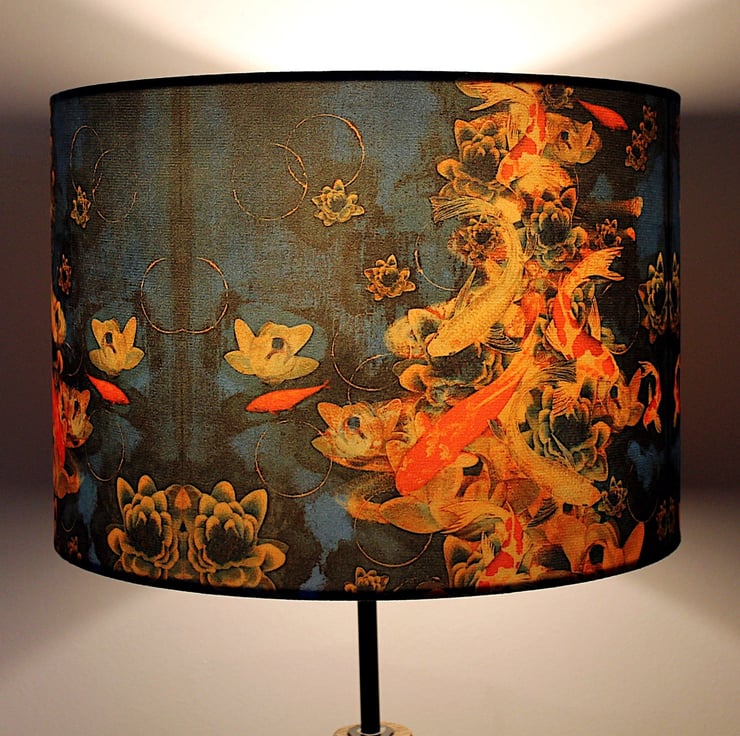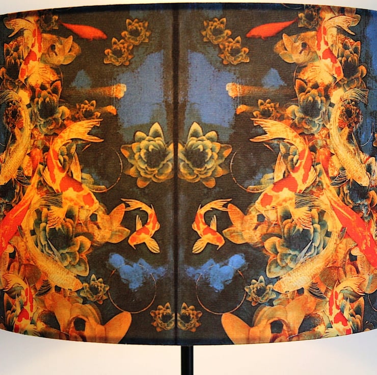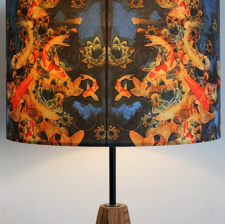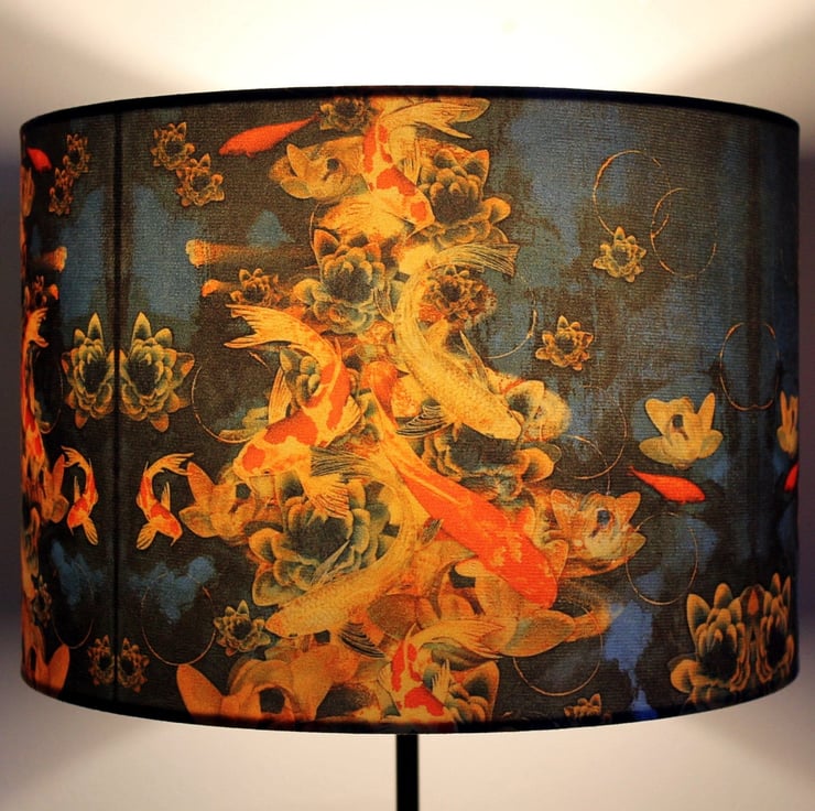 Handmade 'Koi on Cobalt' Drum Lampshade by Lily Greenwood