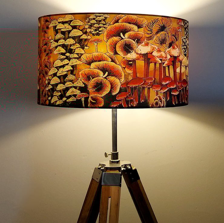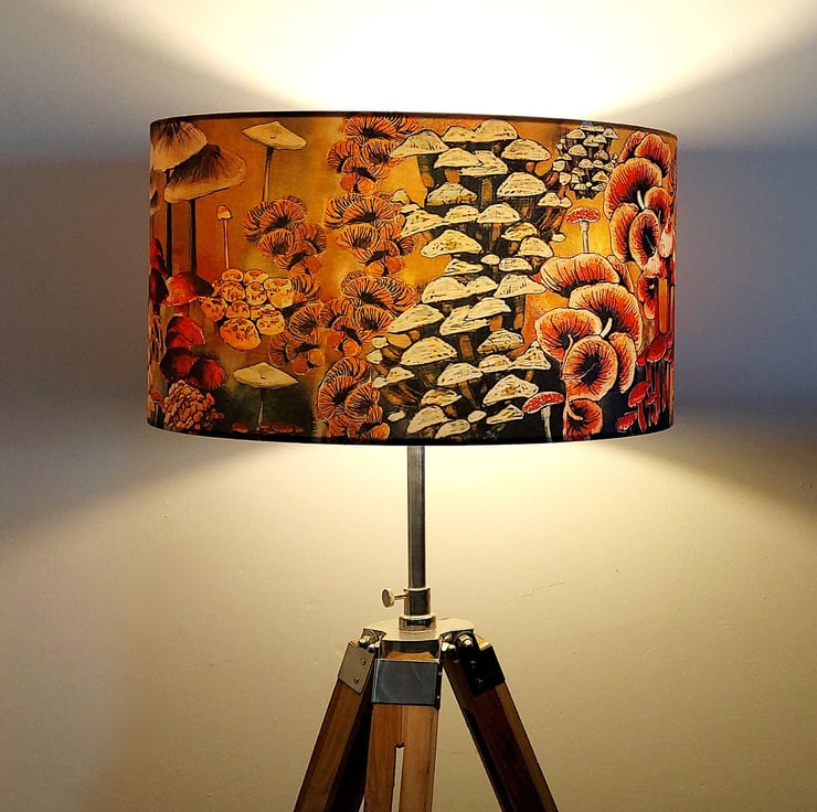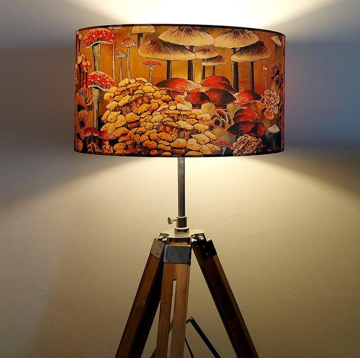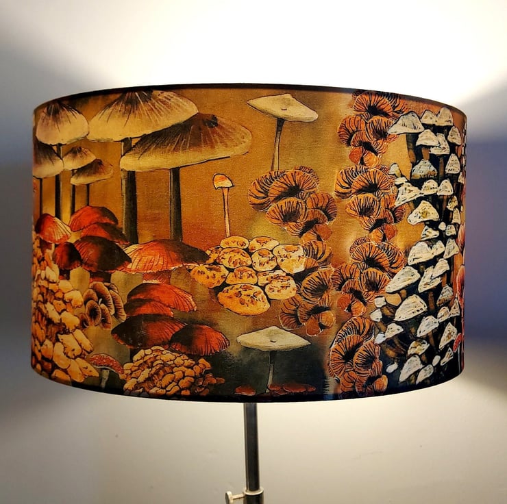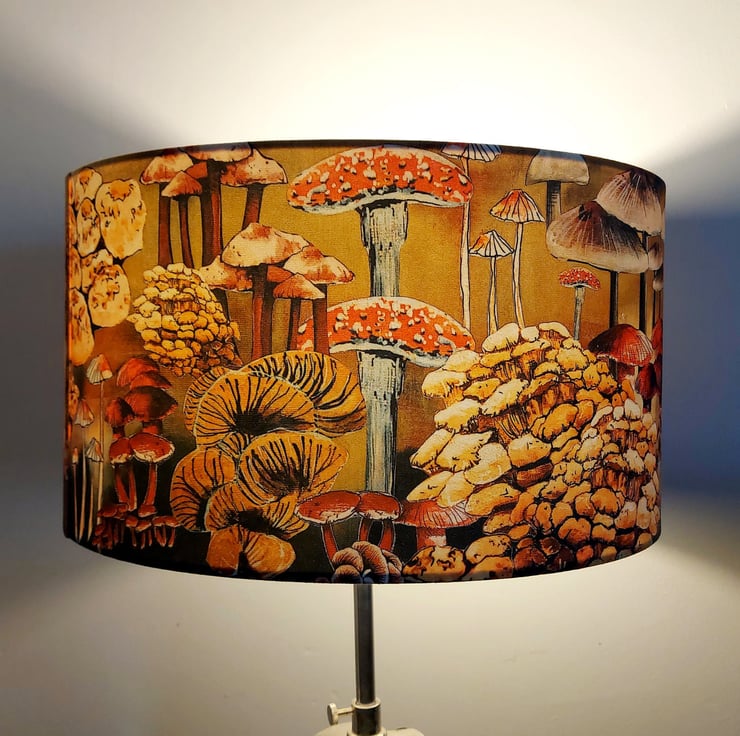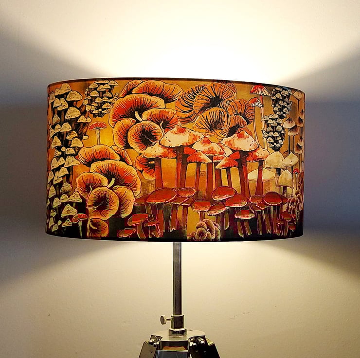Handmade 'Mushrooms and Fungi' Drum Lampshade by Lily Greenwood