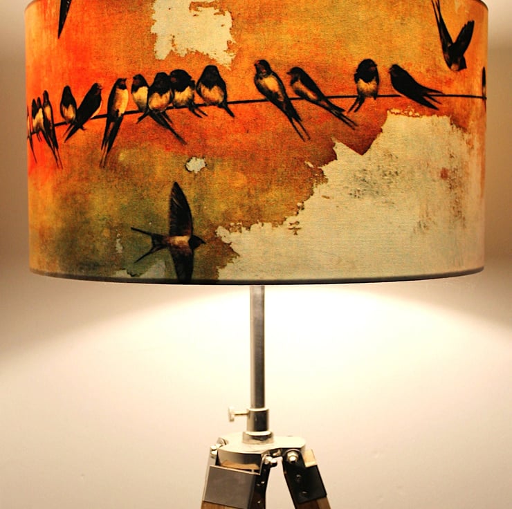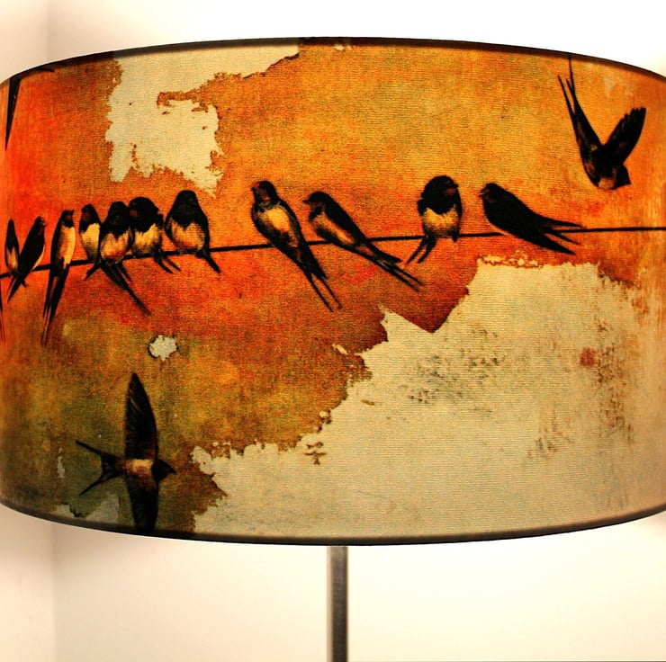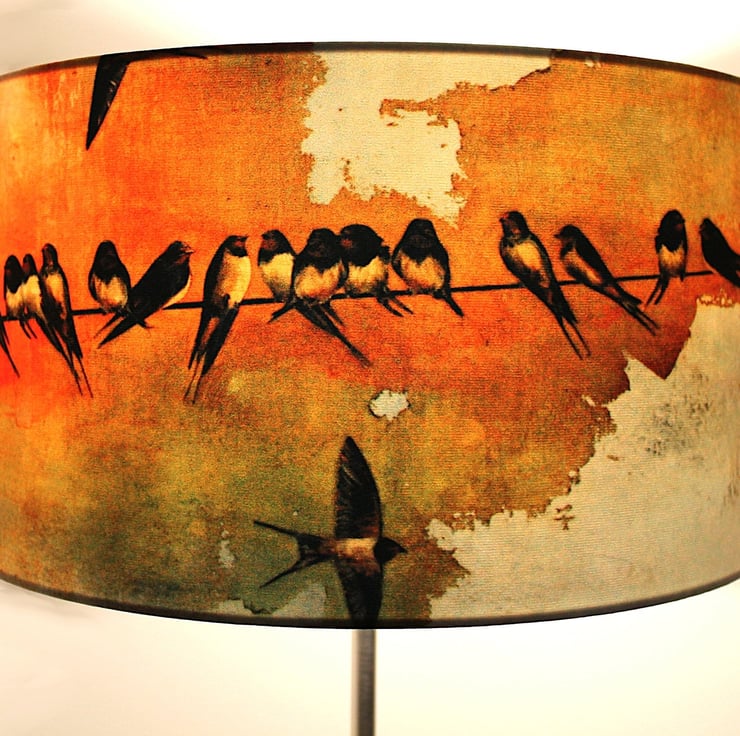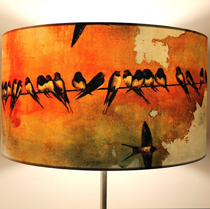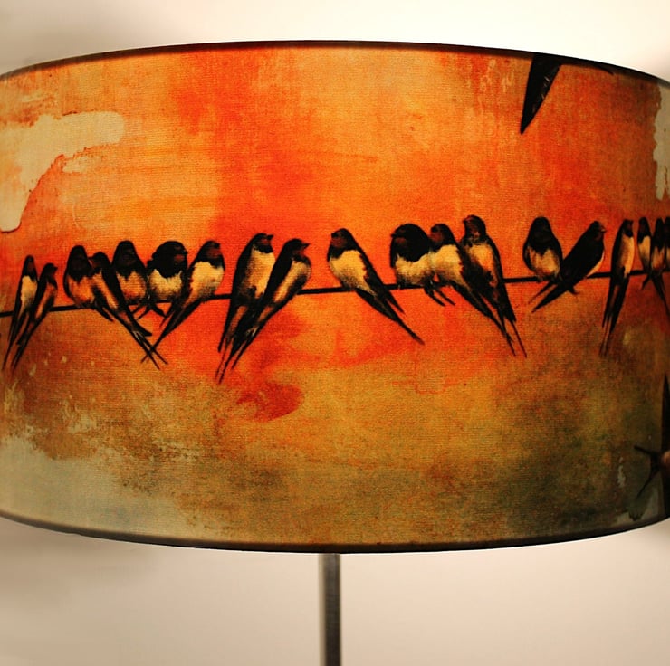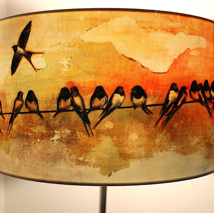 Handmade 'Swallows at Sunrise' Drum Lampshade by Lily Greenwood