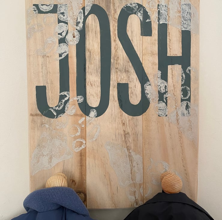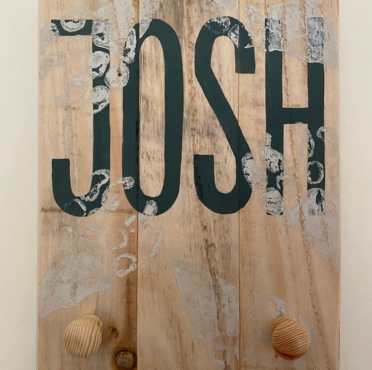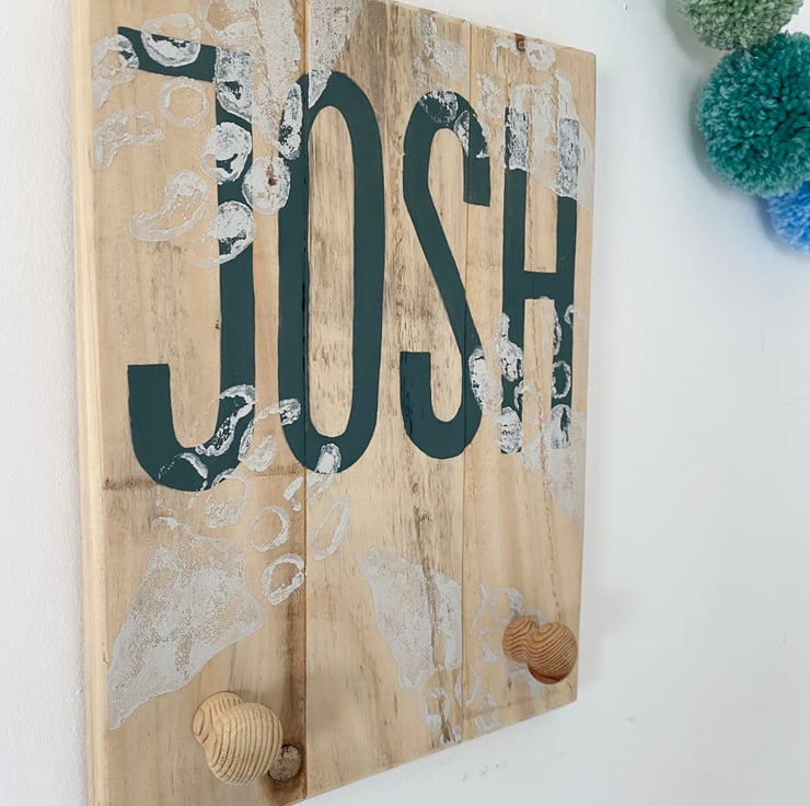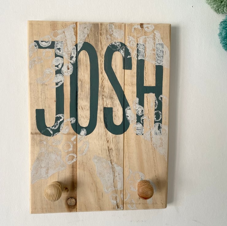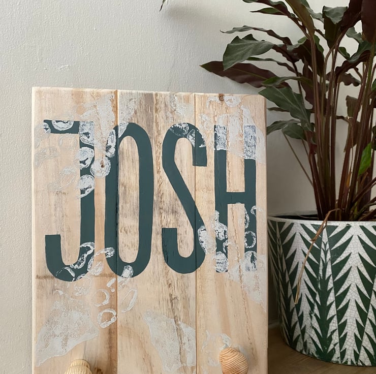 All my signs are handmade from start to finish from my initial selection of timber to drawing and cutting my own stamps. I select timber that hasn’t been planed and whilst sanding I like to keep all of the knots and textures which make each sign unique in feel. Each sign is hand stamped and painted using beautiful natural colours and finished with matt varnish.