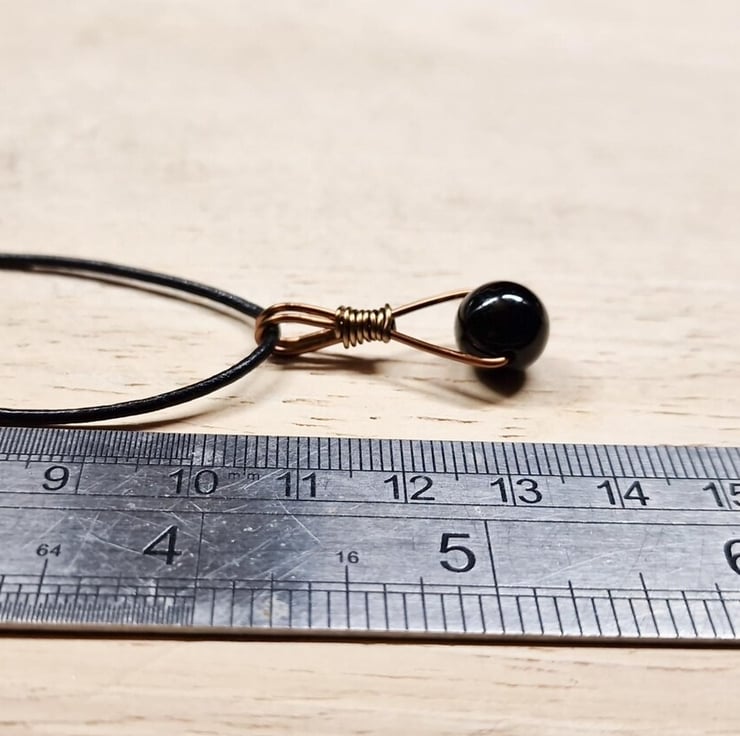 Hung on genuine leather thong simply knotted designed to put straight on without clasps approx. 28inches. ( Cotton cord vegetarian option also available on request.)