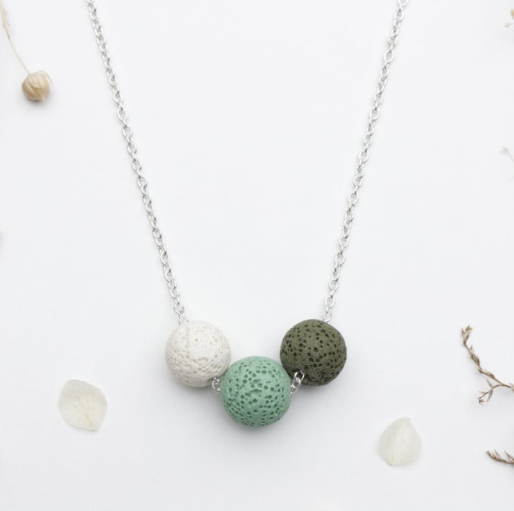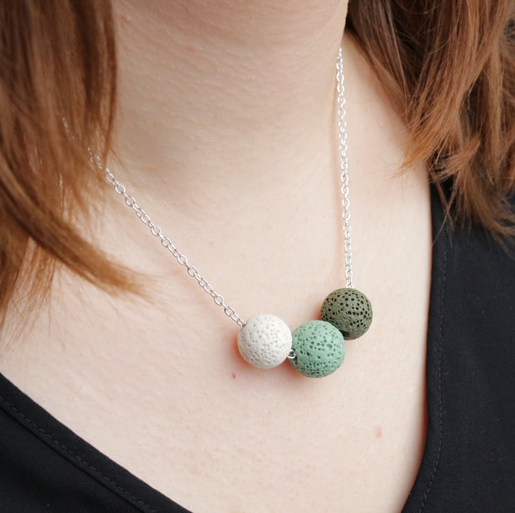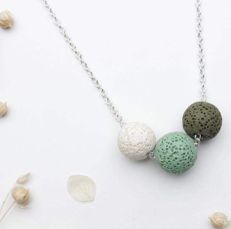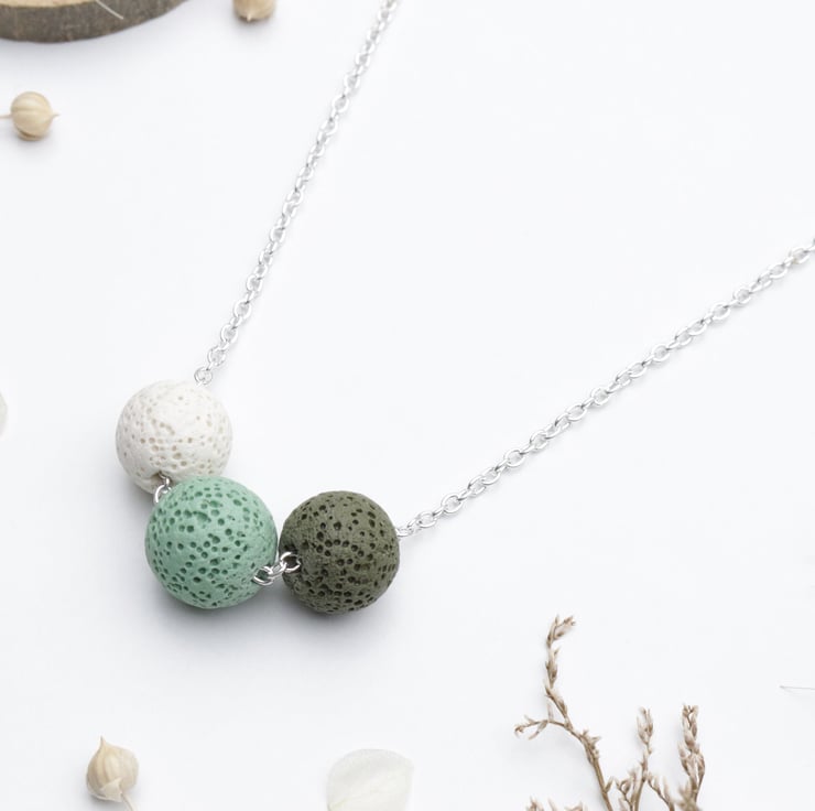 Our beautiful handmade Lava Rock Tones of Green Aromatherapy Scent Diffusing Necklace is the perfect gift or accessory for you or your loved ones.