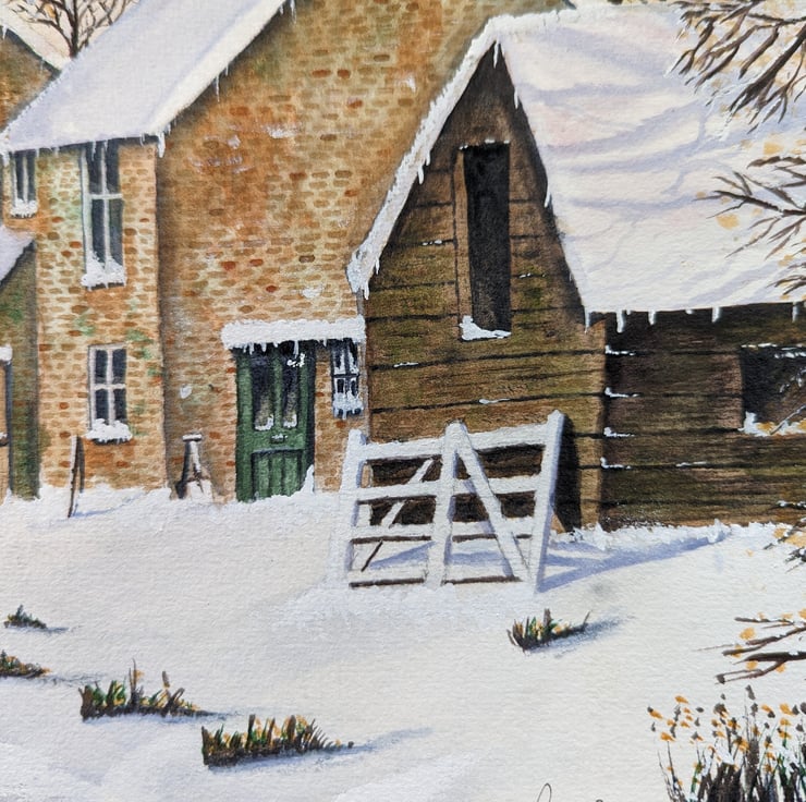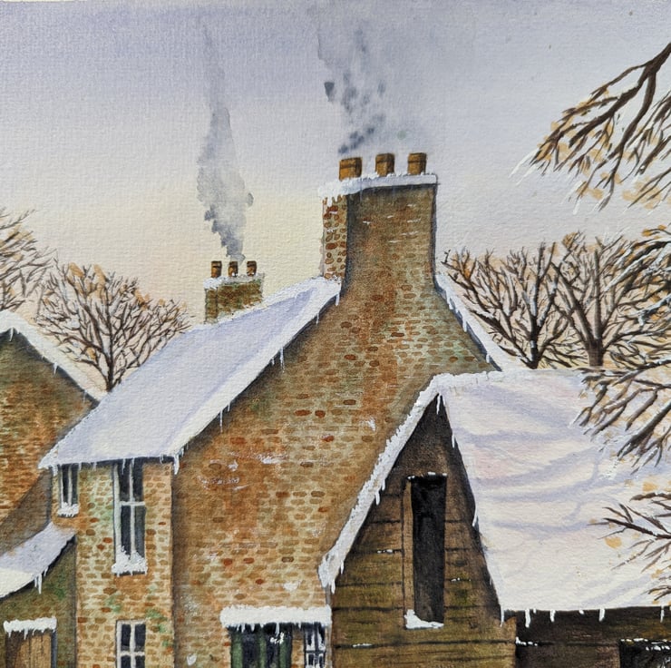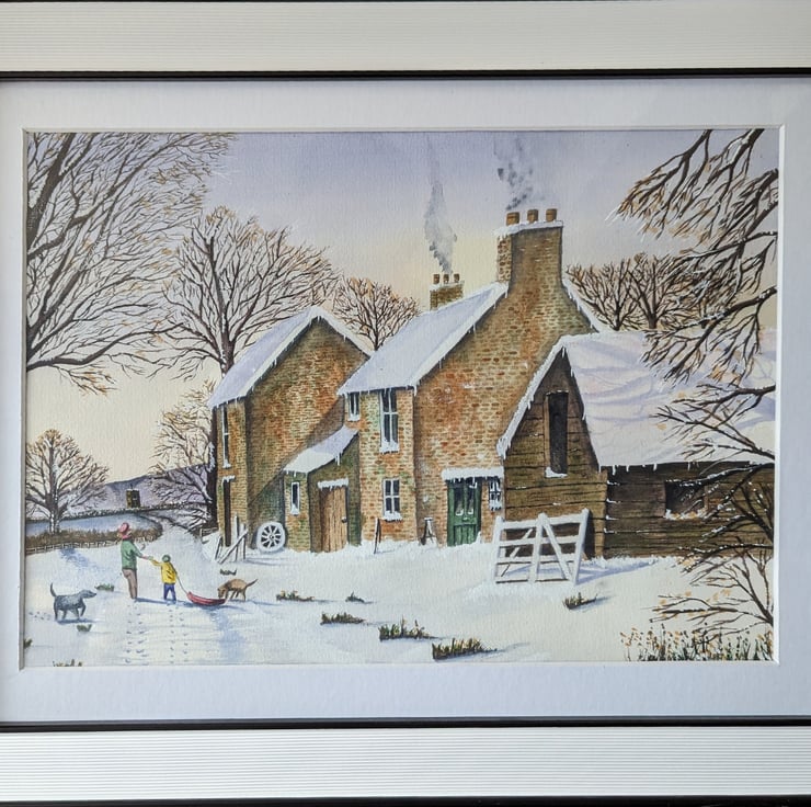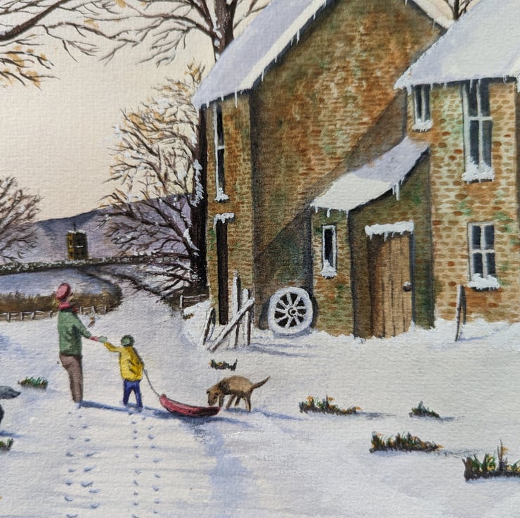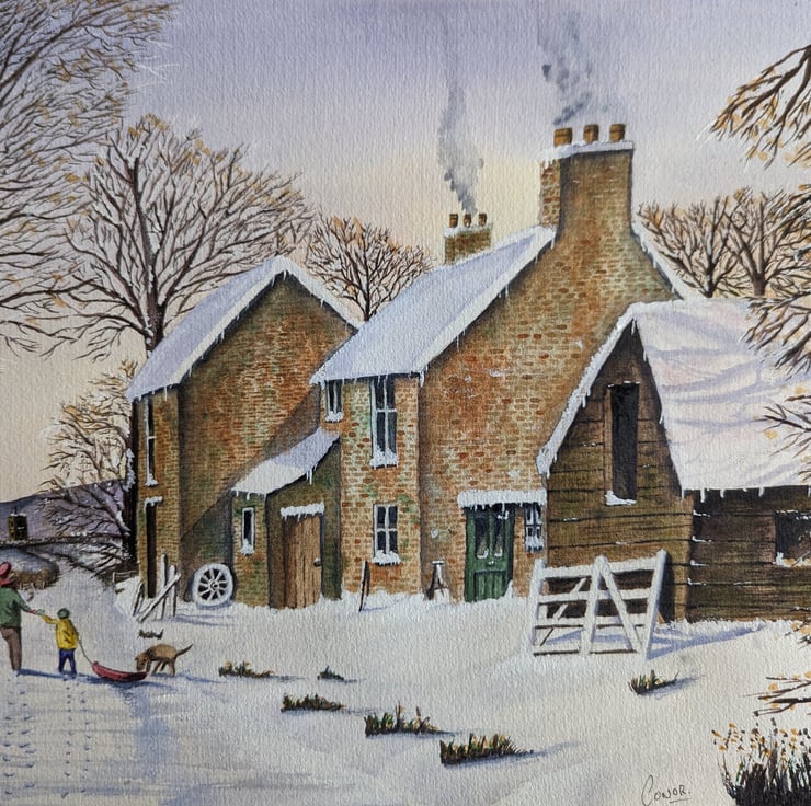 An A4 (297mm x 210mm) print of my original watercolour of a Winters walk Christmassnow scene.