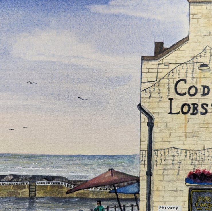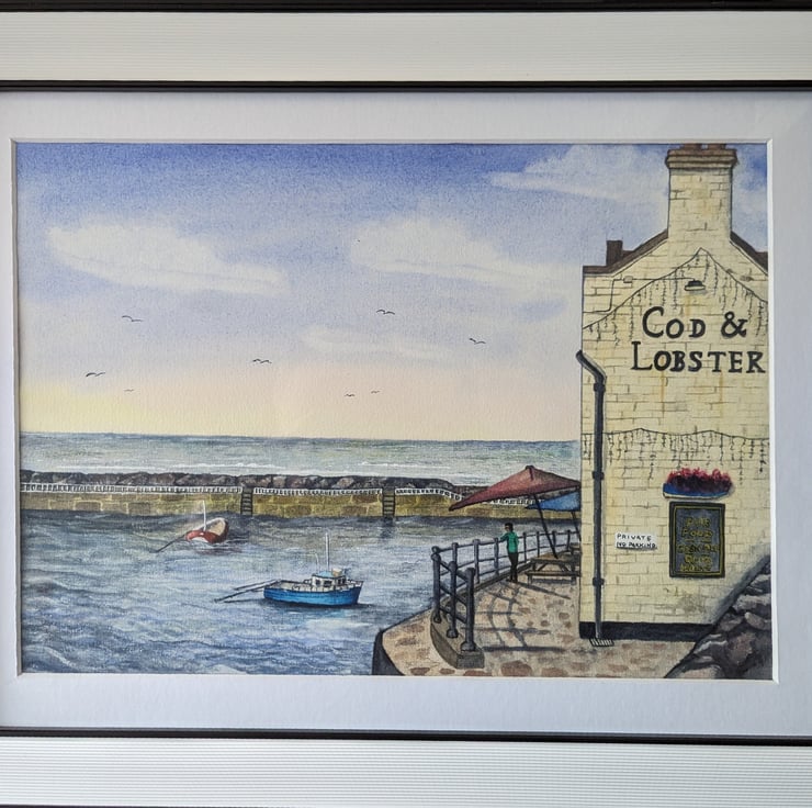 An A4 (297mm x 210mm) print of my original watercolour of the Cod & Lobster pub, Staithes North Yorkshire.