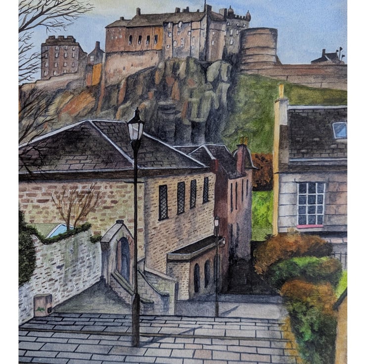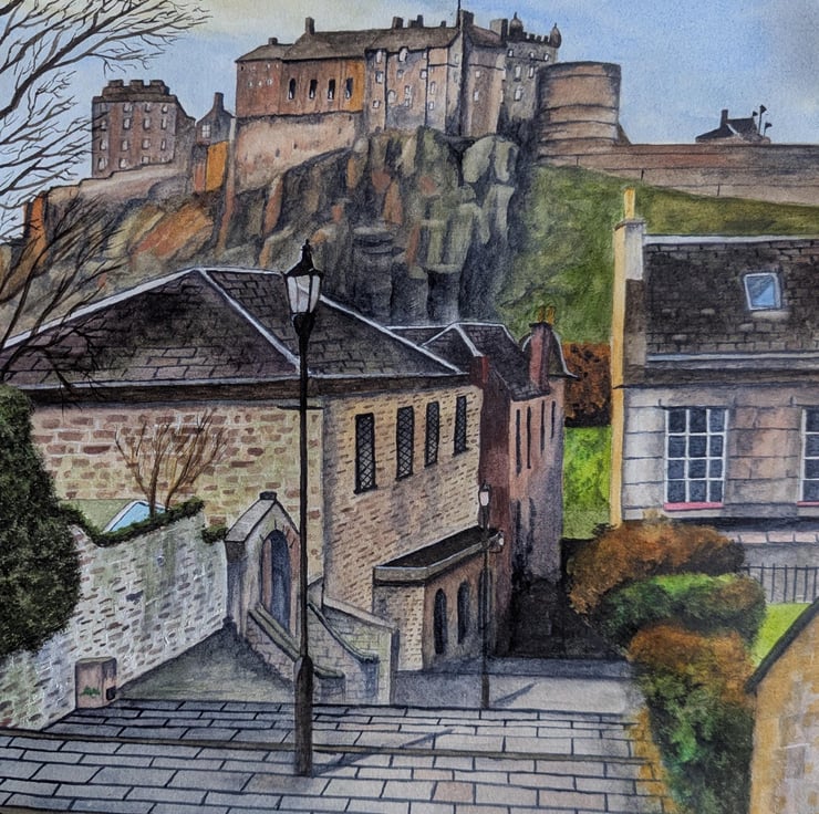 An A4 print (210 x 297mm) of my original painting of Edinburgh Castle viewed from The Vennel.