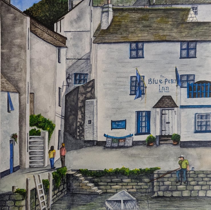 An A4 print (210 x 297mm) of my original painting of The Blue Peter Inn, Polperro Cornwall.