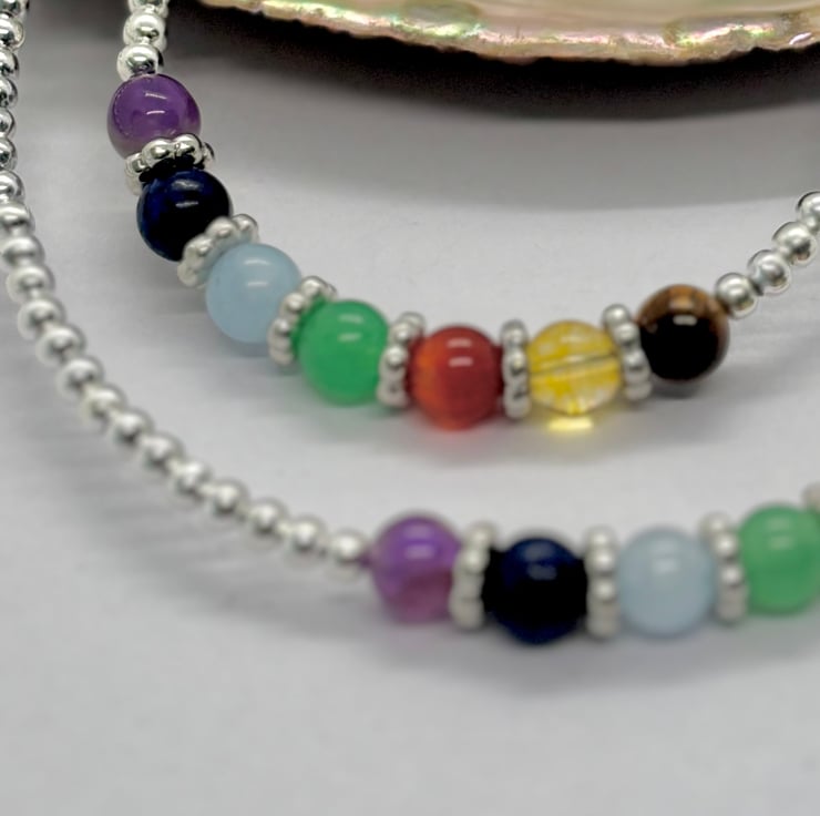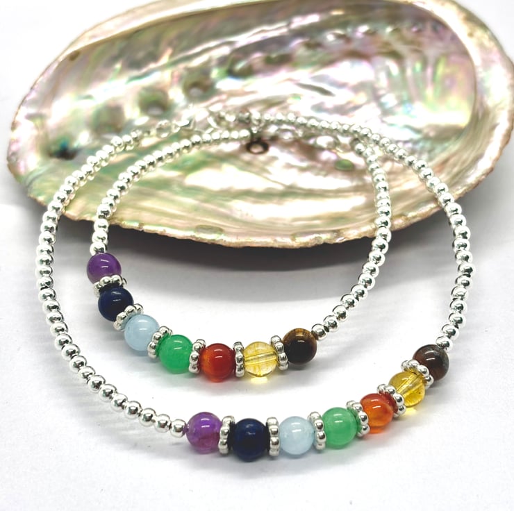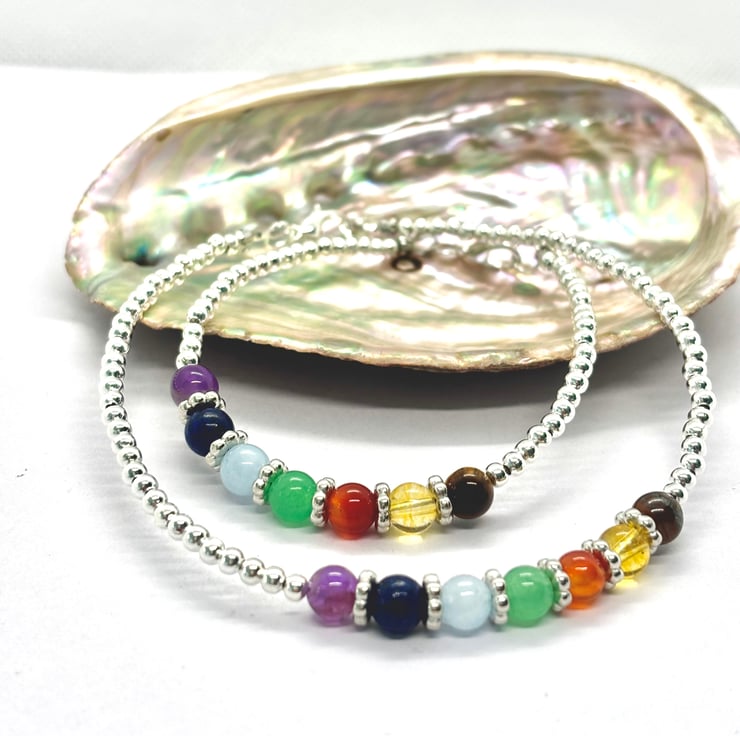 Made with 3mm Sterling silver beads and 6mm Gemstones for each chakra