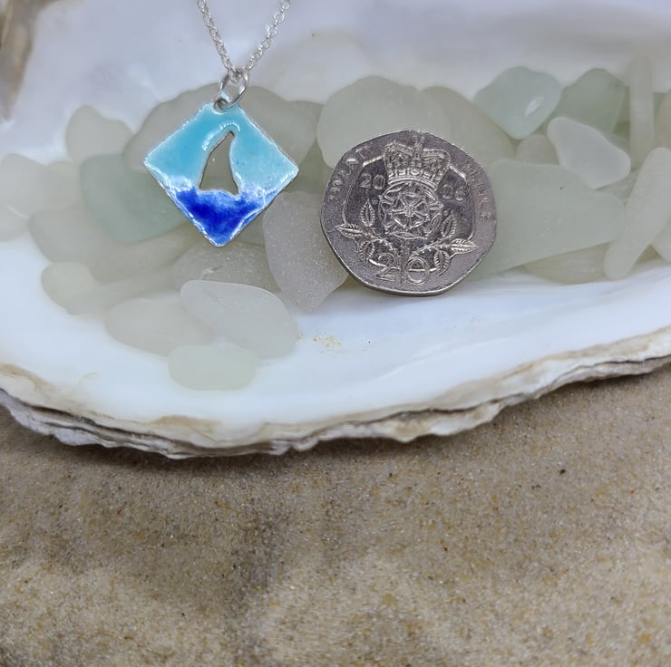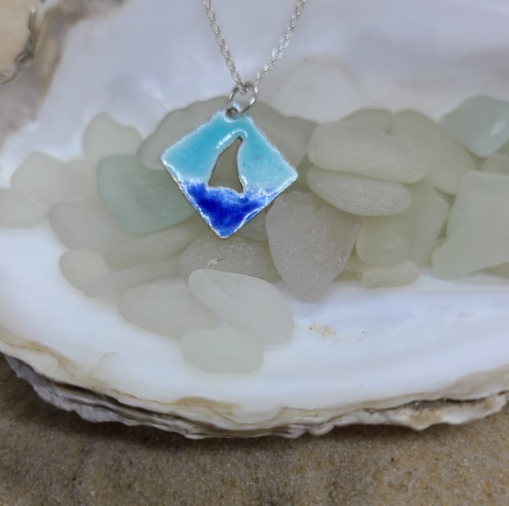 I handmade this recycled sterling silver pendant, I cut out the central boat shape and added several layers of blue enamel in two different shades.