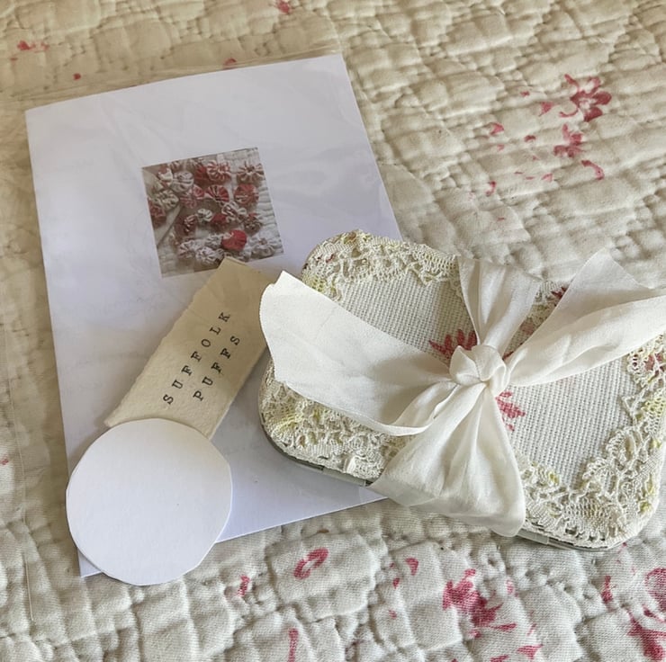 A gorgeous mini sewing tin which comes with fabrics and instructions to make a small number of miniature Suffolk puffs.