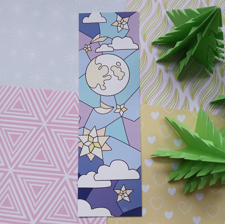 From deep forests, to seas, to the farthest reaches of space, books take us on a journey and these stained glass inspired bookmarks are designed by me with adventure in mind. At 18cm, they won't get too easily lost in hardbacks, and for readers on the go, the heavier card makes them more durable.