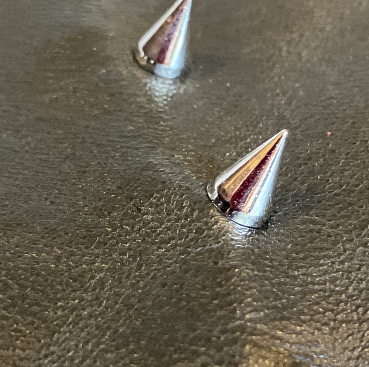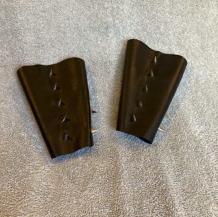 Sm. Pair of soft black leather bracers with 3 rows of chrome coloured 1/2" spikes (screw back) (see photo of backside of bracer) // sold with lacing