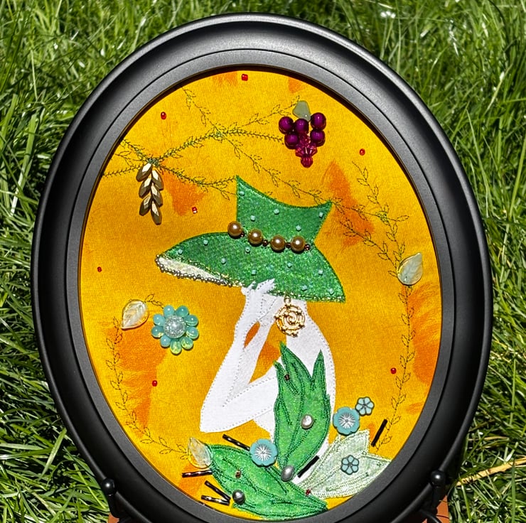 This decorative painting in an oval wooden frame, using both natural and synthetic stones for jewellery,can decorate both a bedside table in the bedroom and a shelf near the fireplace..This is timid attempt to depict the Element of Earth.Suitable as gift for such zodiac signs as Taurus,