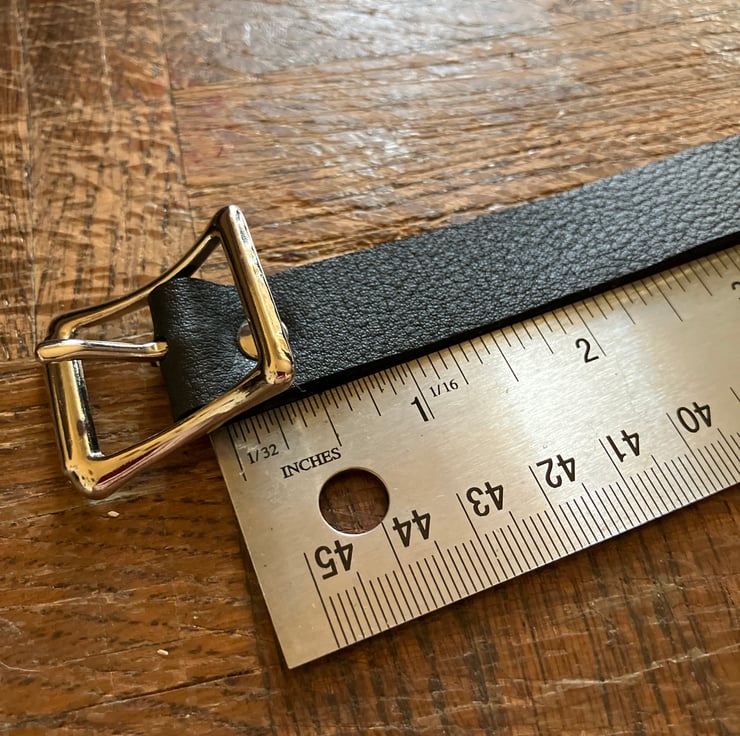 As you can see from the above photos - the choker is not sized and it will fit a neck (15” - 19"). This means - when you order this choker you will need to tell me what your neck size is (in INCHES) and I will hole punch to your specifications (choker also has a nickel plated buckle closure)