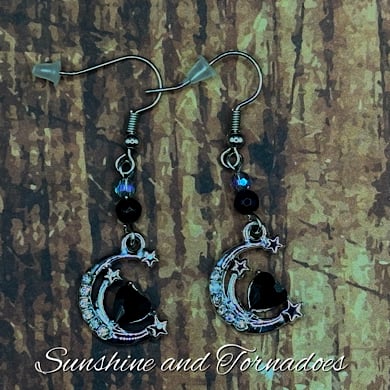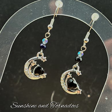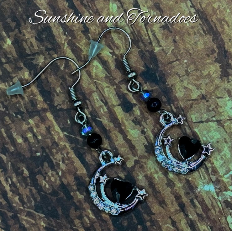 These stunning alternative earrings have been handmade using 4mm natural black obsidian beads, and 4mm faceted crystal beads.