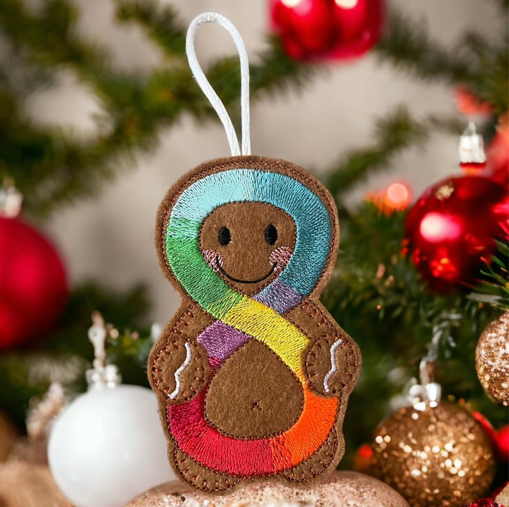 Handmade embroidered gingerbread man.