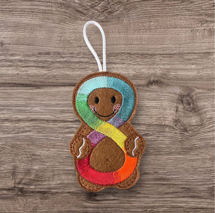Autism awareness infinity Gingerbread man Embroidered Hanging Keepsake