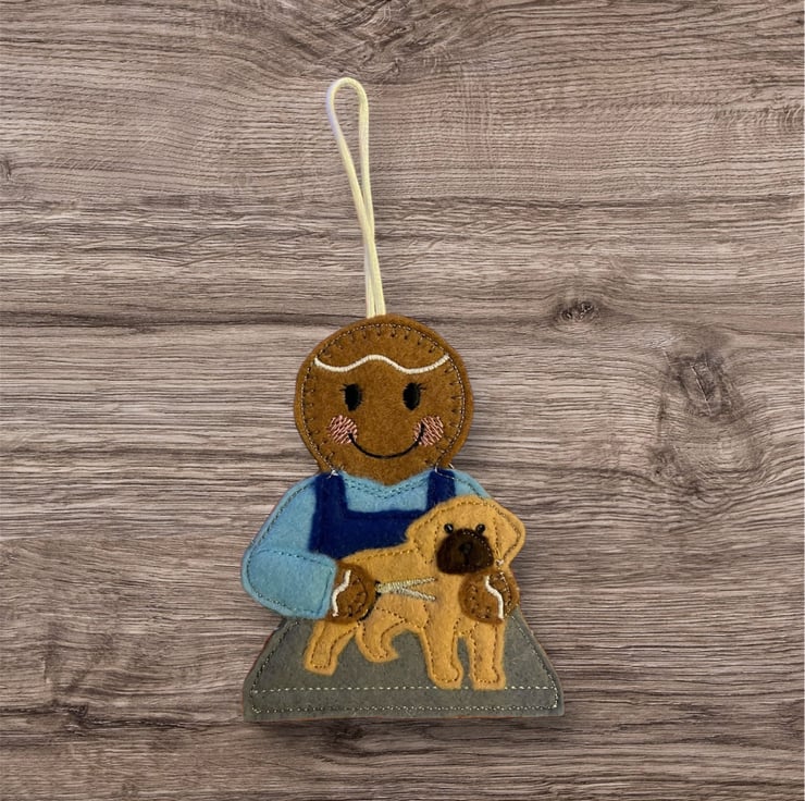Handmade embroidered gingerbread lady.
